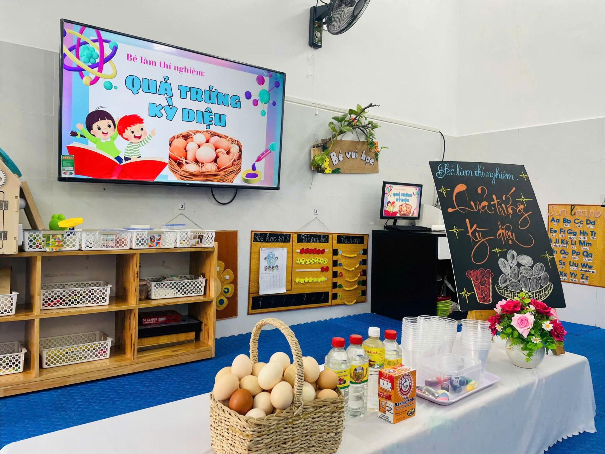 Hơn thế nữa, sau tiết học lòng đỏ trứng vô vàn dinh dưỡng lại được các cô nhà bếp chế biến cho các con món trứng cực kỳ thơm ngon nữa.