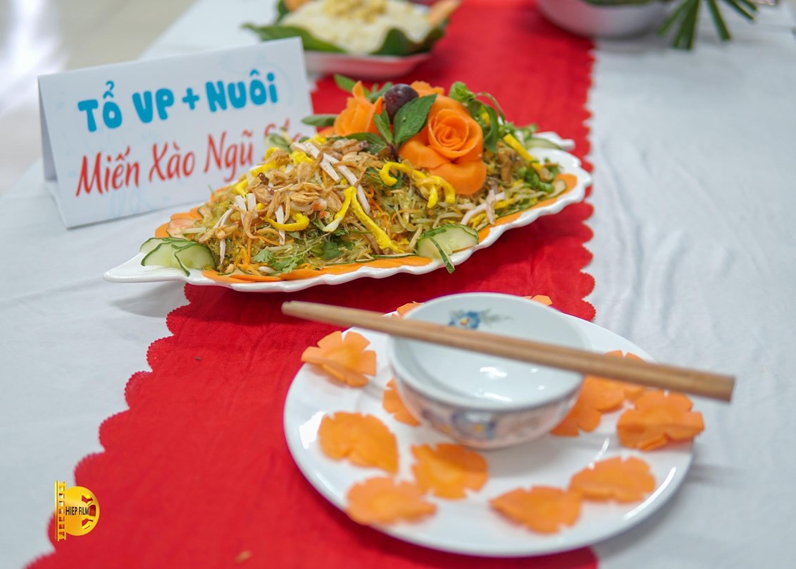 Miến xào ngũ sắc, điểm cài bông hoa