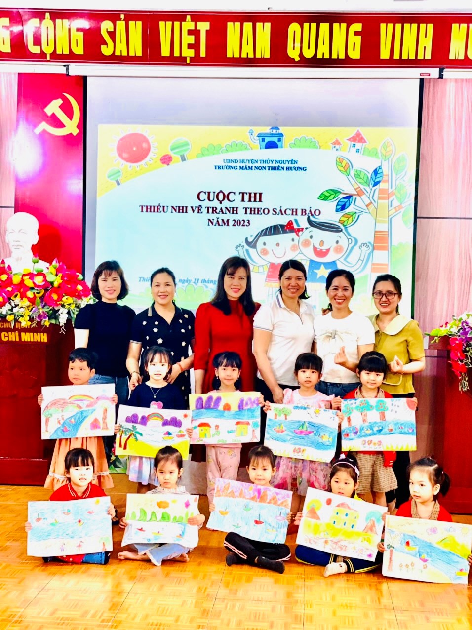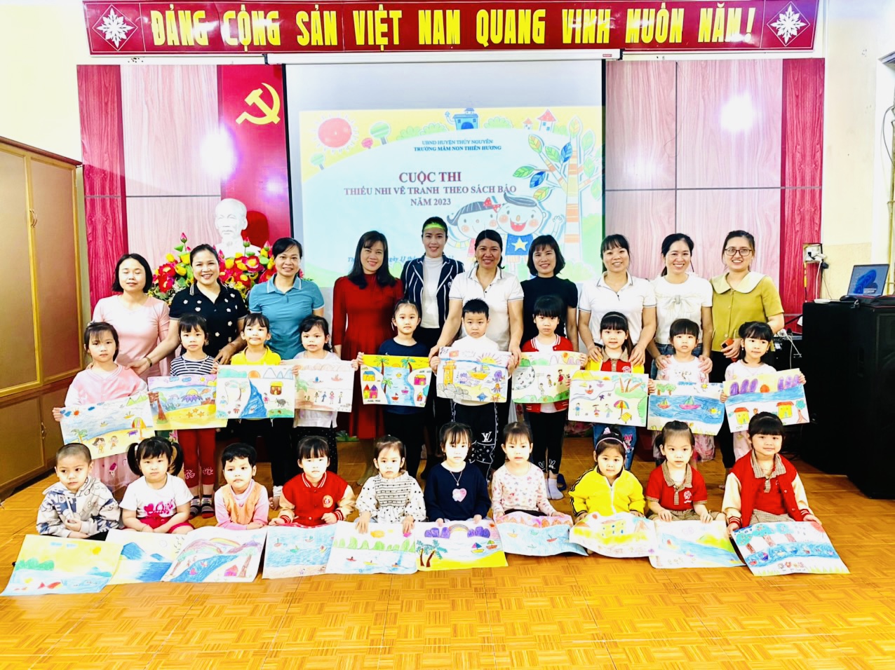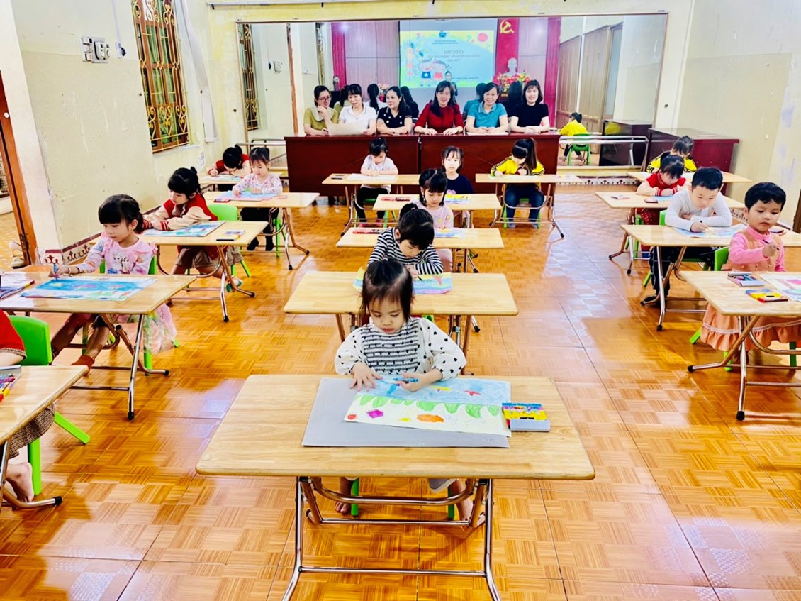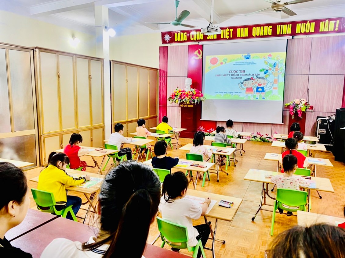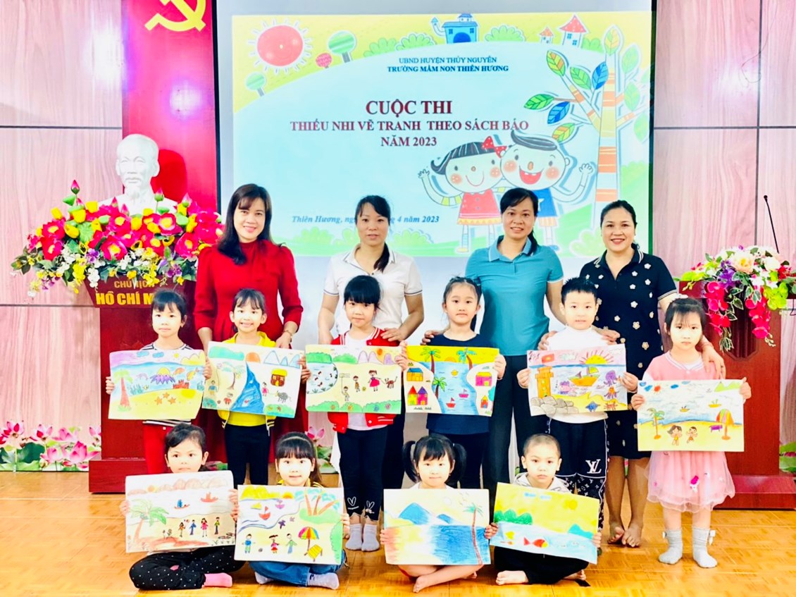 Trường MN Thiên Hương tổ chức Hội thi Thiếu nhi Hải Phòng vẽ tranh theo sách, báo năm 2023.
