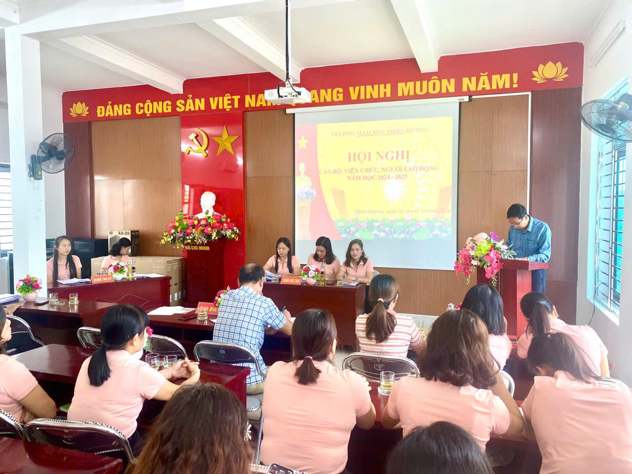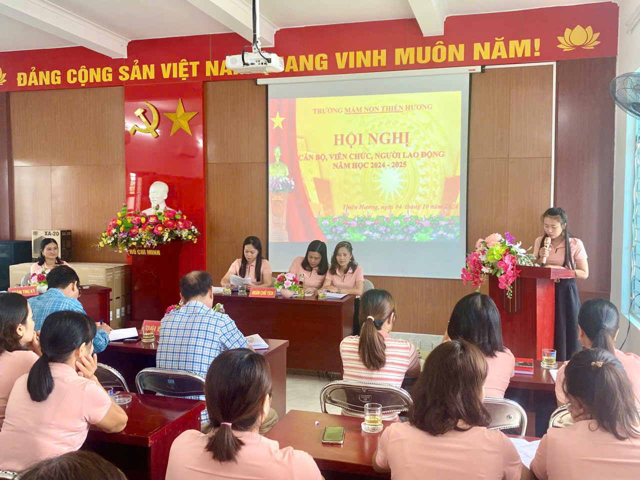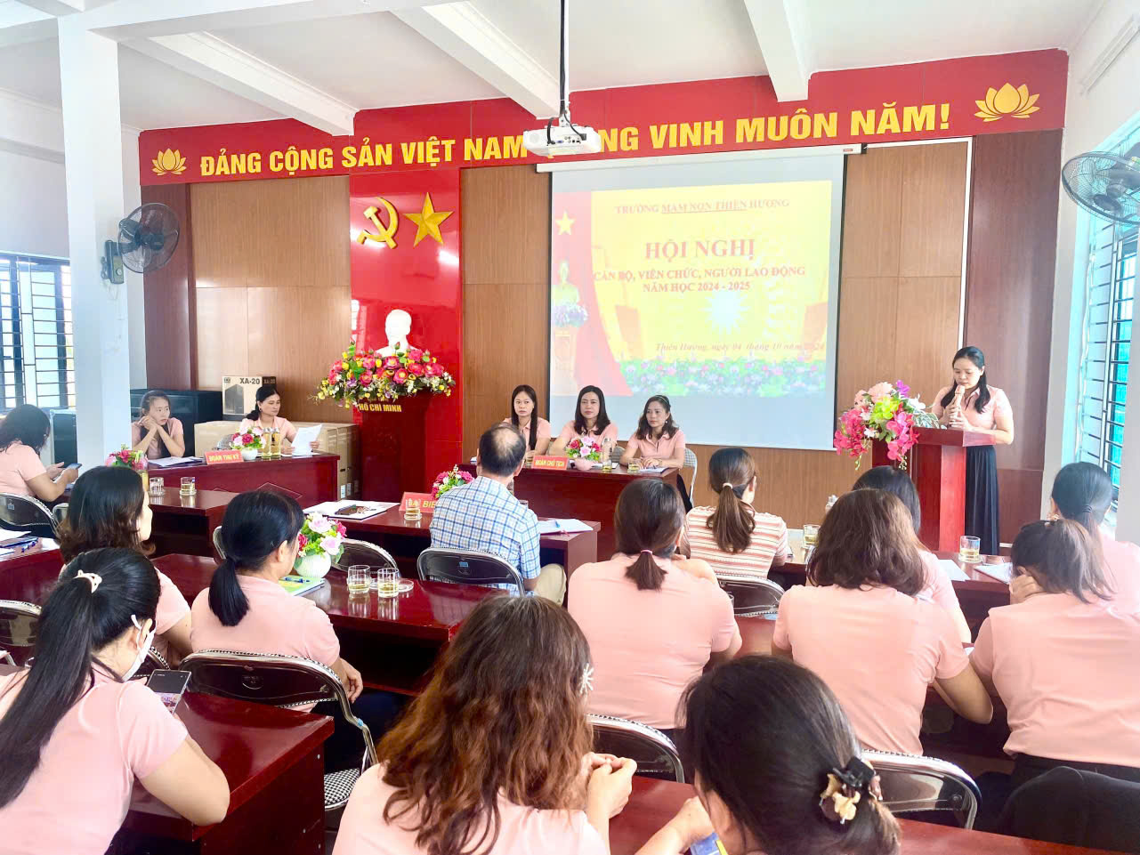 TRƯỜNG MẦM NON THIÊN HƯƠNG TỔ CHỨC THÀNH CÔNG HỘI NGHỊ CÁN BỘ, VIÊN CHỨC, NGƯỜI LAO ĐỘNG NĂM HỌC 2024 – 2025.