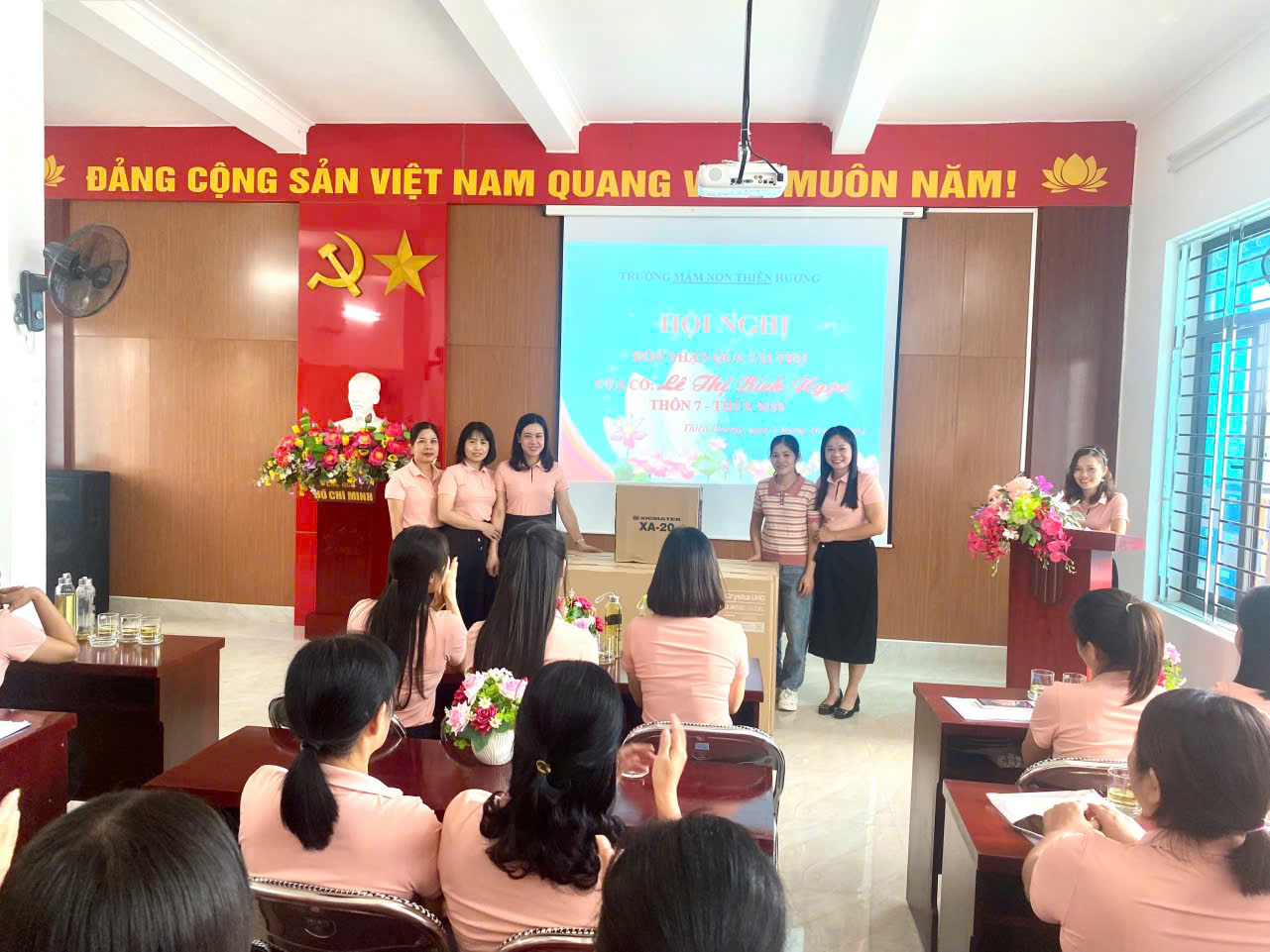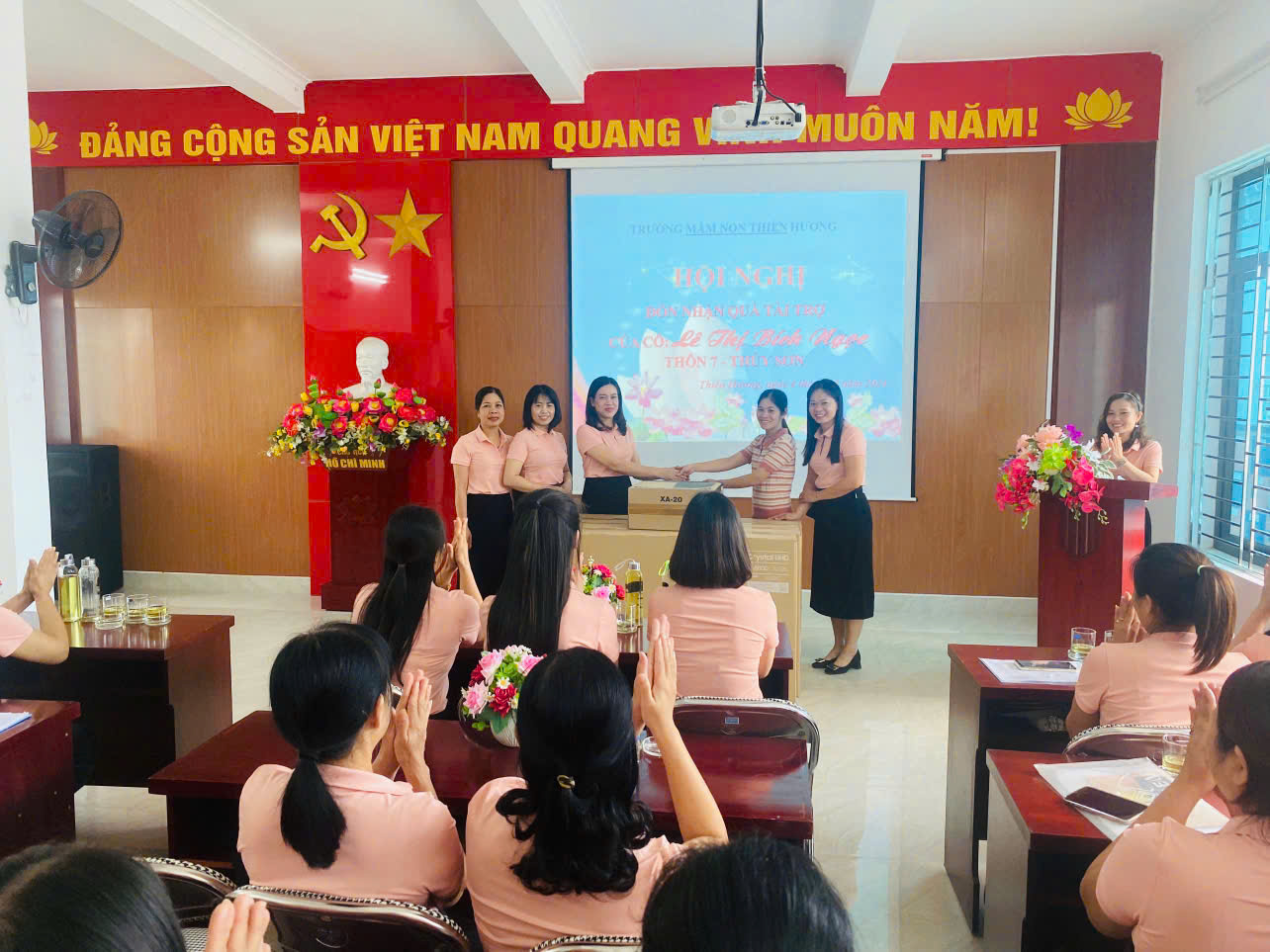 🌿Cũng tại hội nghị, Ban Giám hiệu & Công đoàn trường Mầm non Thiên Hương đã tiếp nhận tài trợ 5tivi và 1cây máy tính của cô Lê Thị Bích Ngọc - Thôn 7, xã Thuỷ Sơn, H. Thuỷ Nguyên.